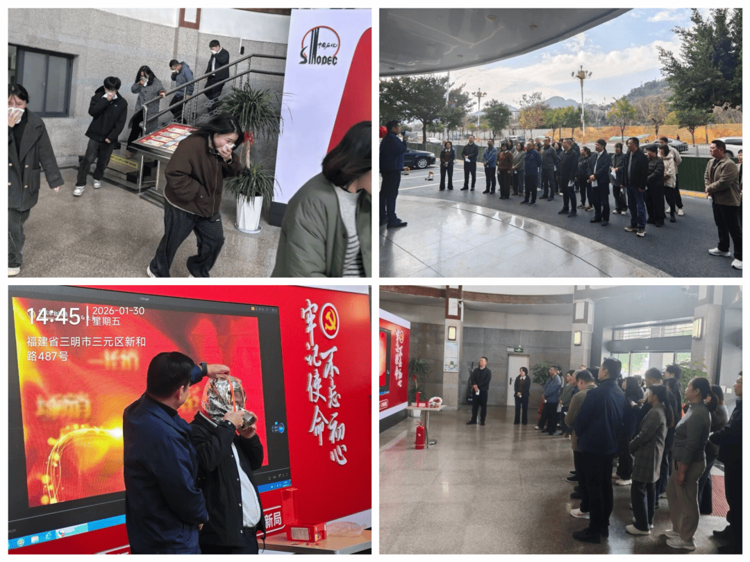 本次演练模拟办公区突发火情。各部门员工听到消防警报后,在HSE联络员的引导下,保持冷静,迅速用湿毛巾捂住口鼻,有序地从办公楼安全逃生通道撤离至大楼外空旷区域的集合点,顺利完成疏散任务。